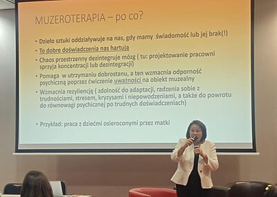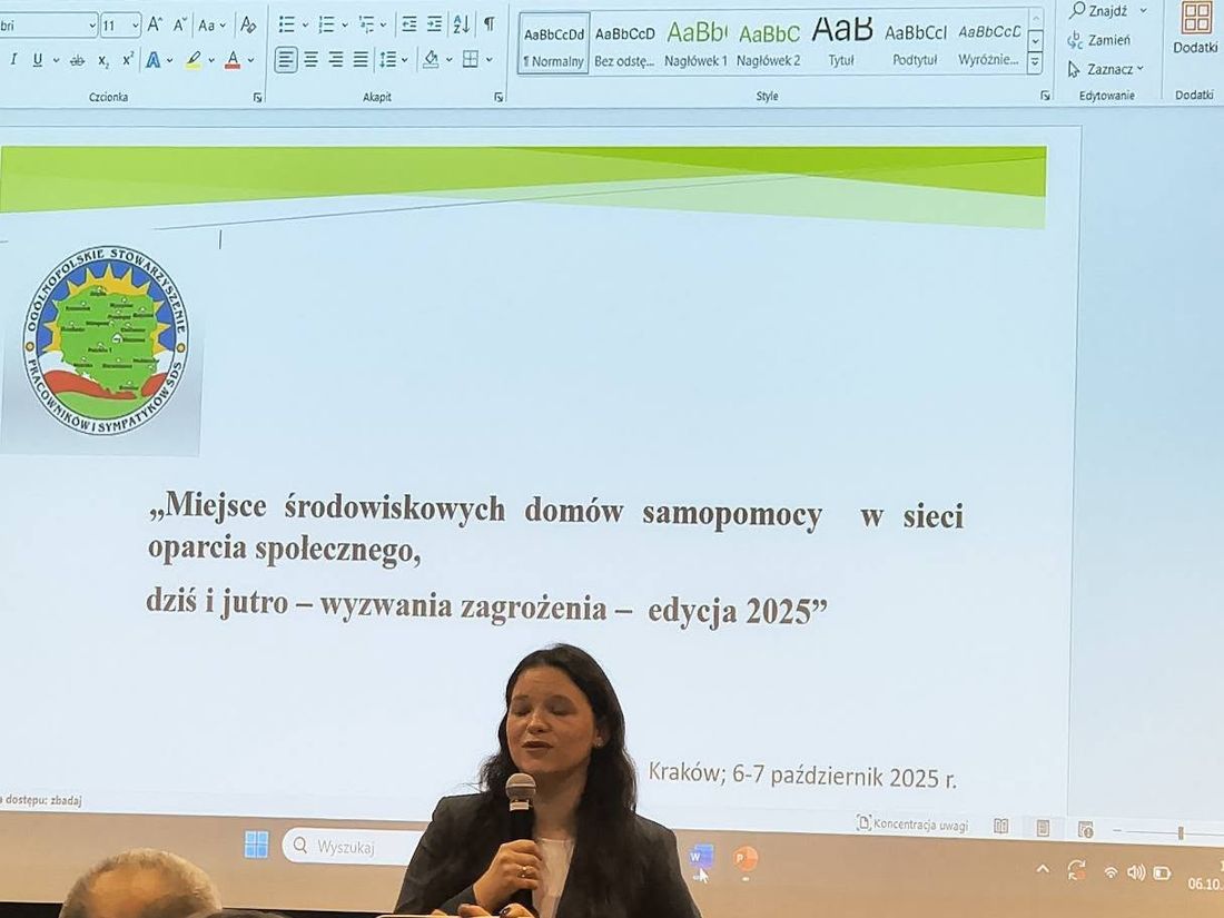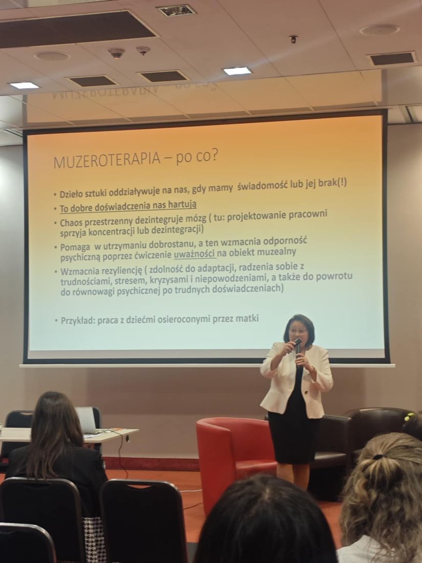 Podczas ogólnopolskiej konferencji kierowników środowiskowych domów samopomocy zorganizowaną przez Ogólnopolskie Stowarzyszenie Pracowników i Sympatyków ŚDS, która odbywa się w Krakowie w dniach 6/7 października, Pani Dyrektor Stanisława Szczepaniak reprezentowała naszą Fundację z prelekcją na temat muzeoterapii oraz w panelu dyskusyjnym o różnorodności terapii, w naszym przypadku, terapii teatrem 🎭