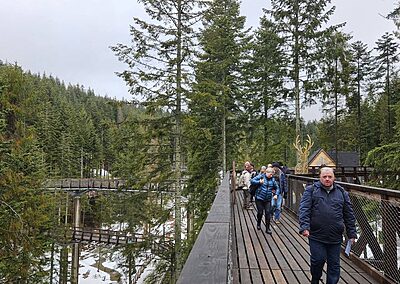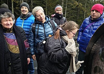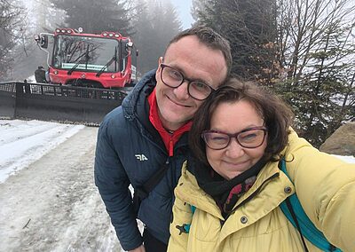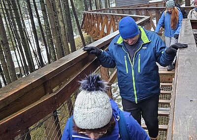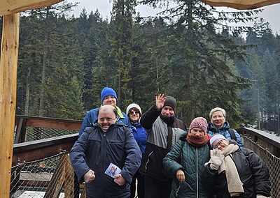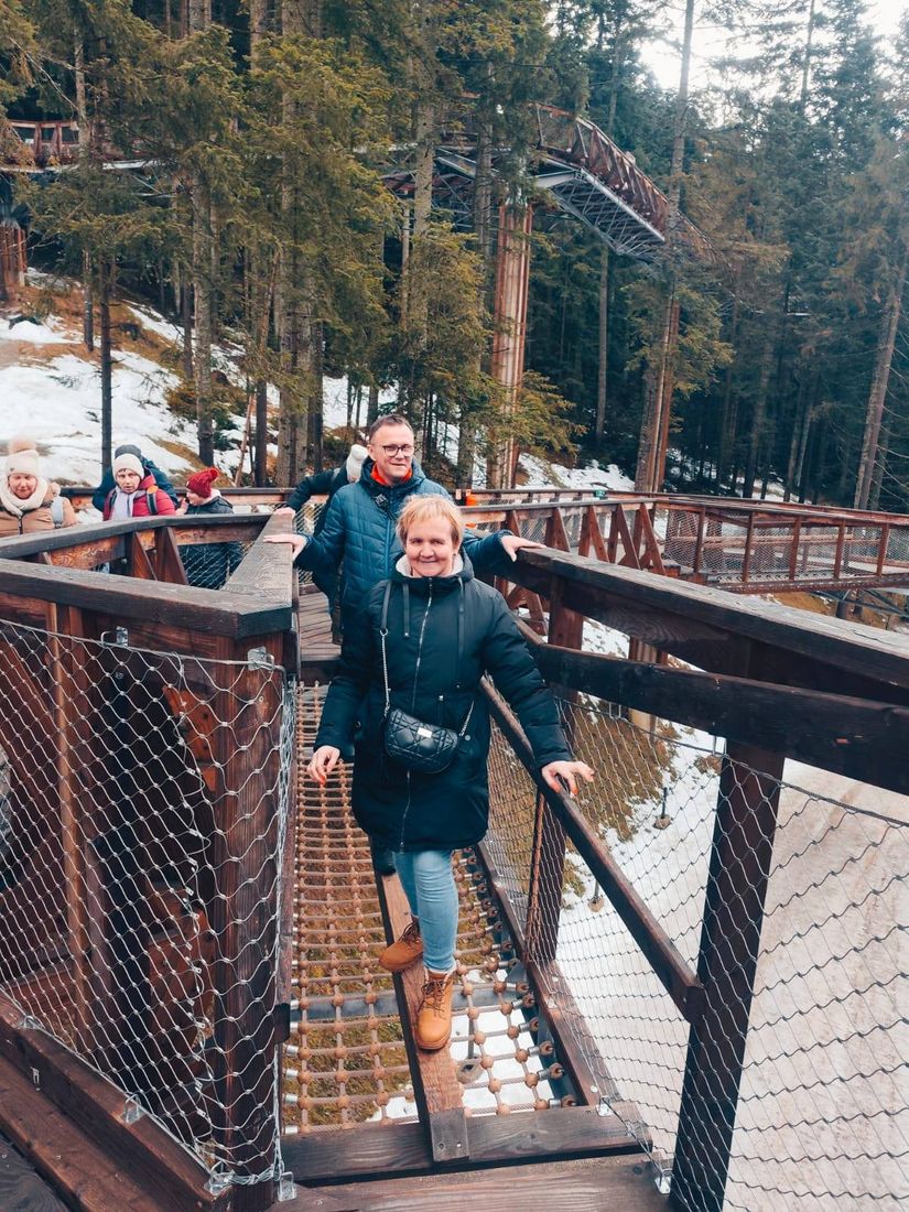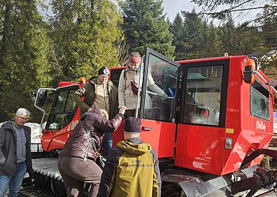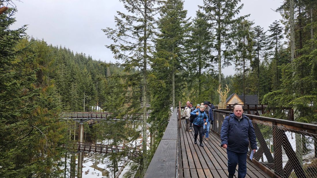 Naszym celem była Brama w Gorce – miejsce, gdzie przyroda spotyka się z przygodą. Spacer ścieżką edukacyjną był dopiero rozgrzewką, bo prawdziwą atrakcją okazał się… przejazd ratrakiem! 🚜
