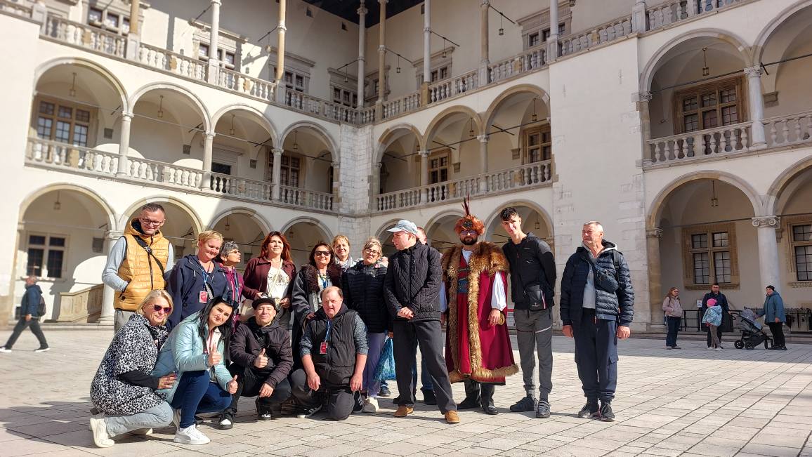 Dziś Wawel rozbrzmiewał śmiechem i radością! 🎉 Uczestnicy naszego Domu wraz z gośćmi z Środowiskowy Dom Samopomocy w Krzęcinie odbyli wyjątkową wycieczkę, pełną historii, uśmiechów i wspólnego odkrywania królewskich tajemnic Krakowa 👑