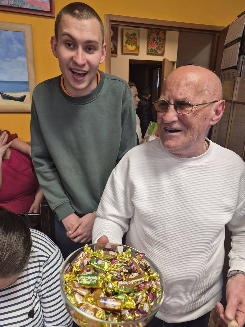 Wojciech i Marek świętują imieniny. Pan Marek rozdaje cukierki „do pary”, a Wojtkowi zamiast sto lat zaśpiewaliśmy „Którędy do Poręby…” tak jak on śpiewa nam cały rok 😃