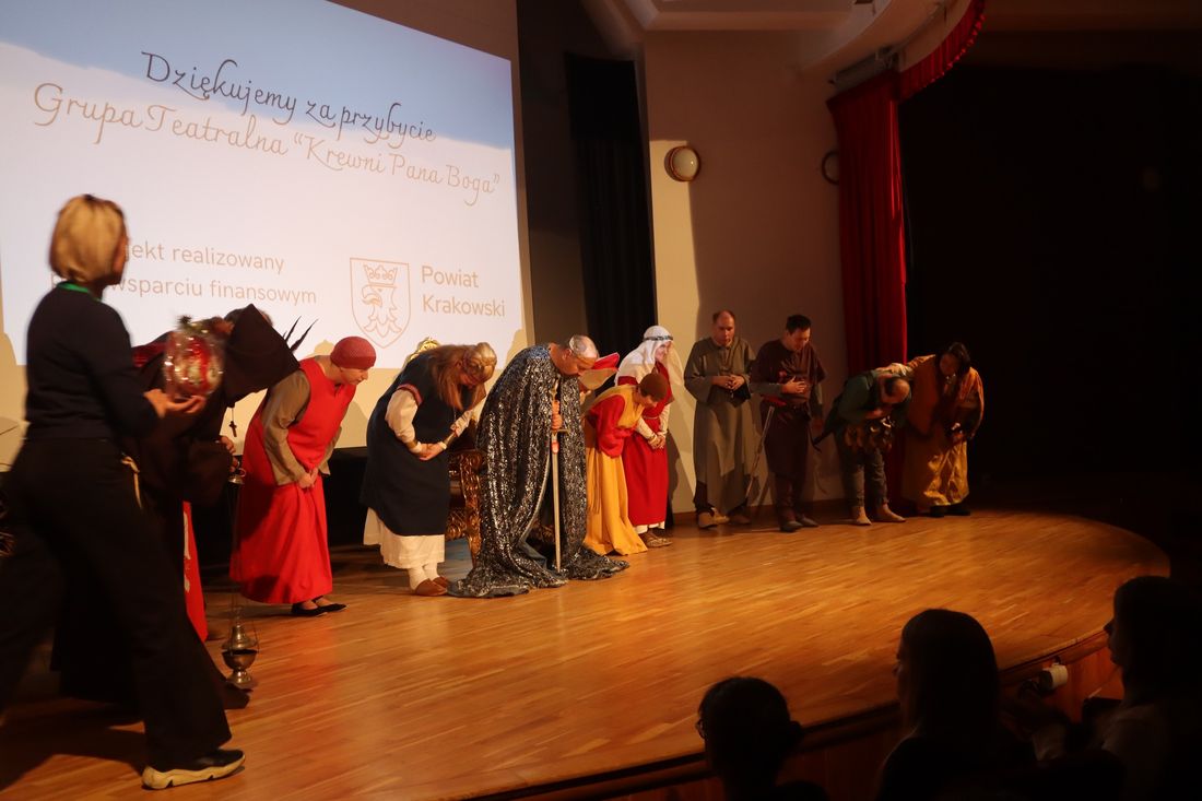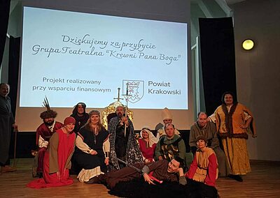 Jesteśmy dumni z naszej Grupy Teatralnej „Krewni Pana Boga”, która wykazała się niezwykłym profesjonalizmem i zaangażowaniem podczas prób i premiery ( zważywszy na brak miejsca do prób:/).